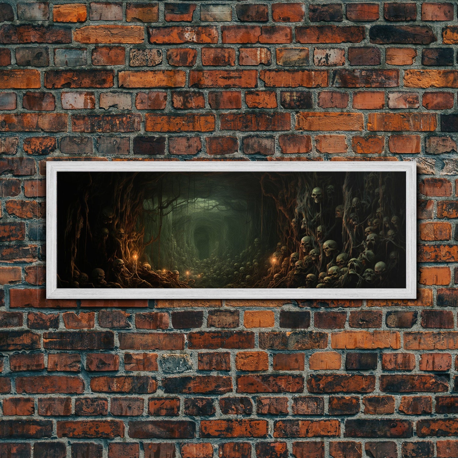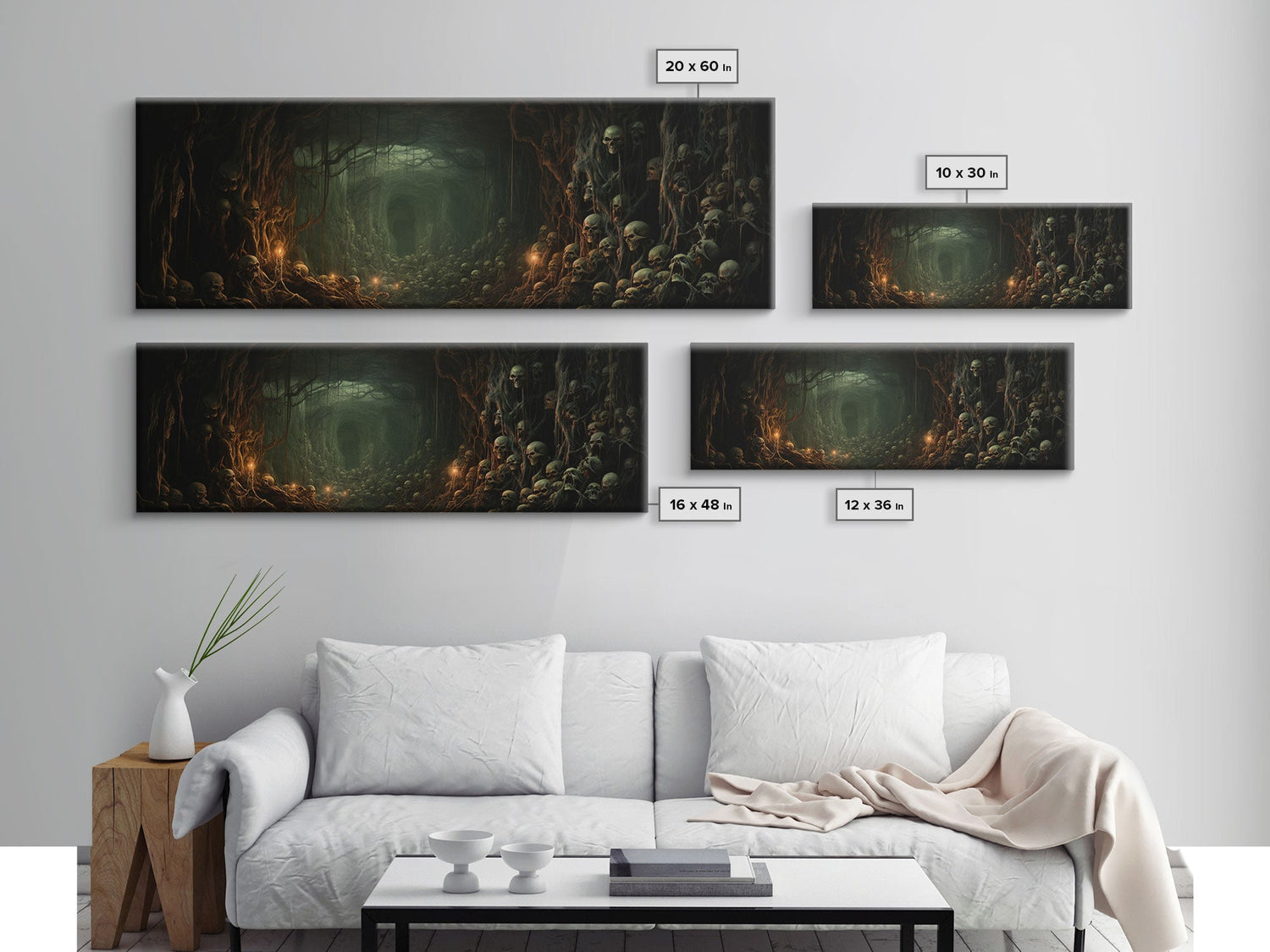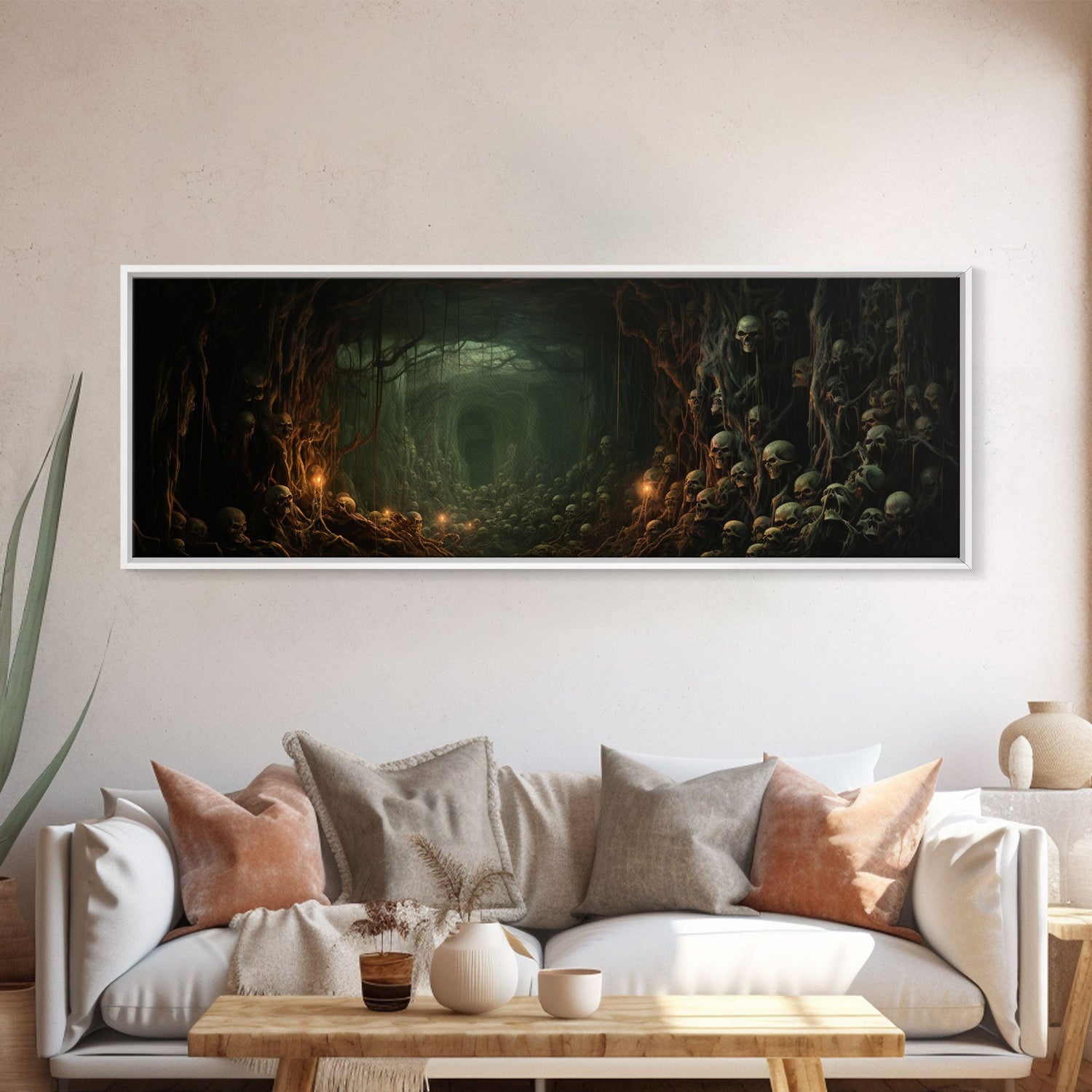 The Skull Crypt Panoramic Canvas Print, Framed Halloween Art, Spooky Decor, Halloween Art, Halloween Wall Art, Halloween Art Print