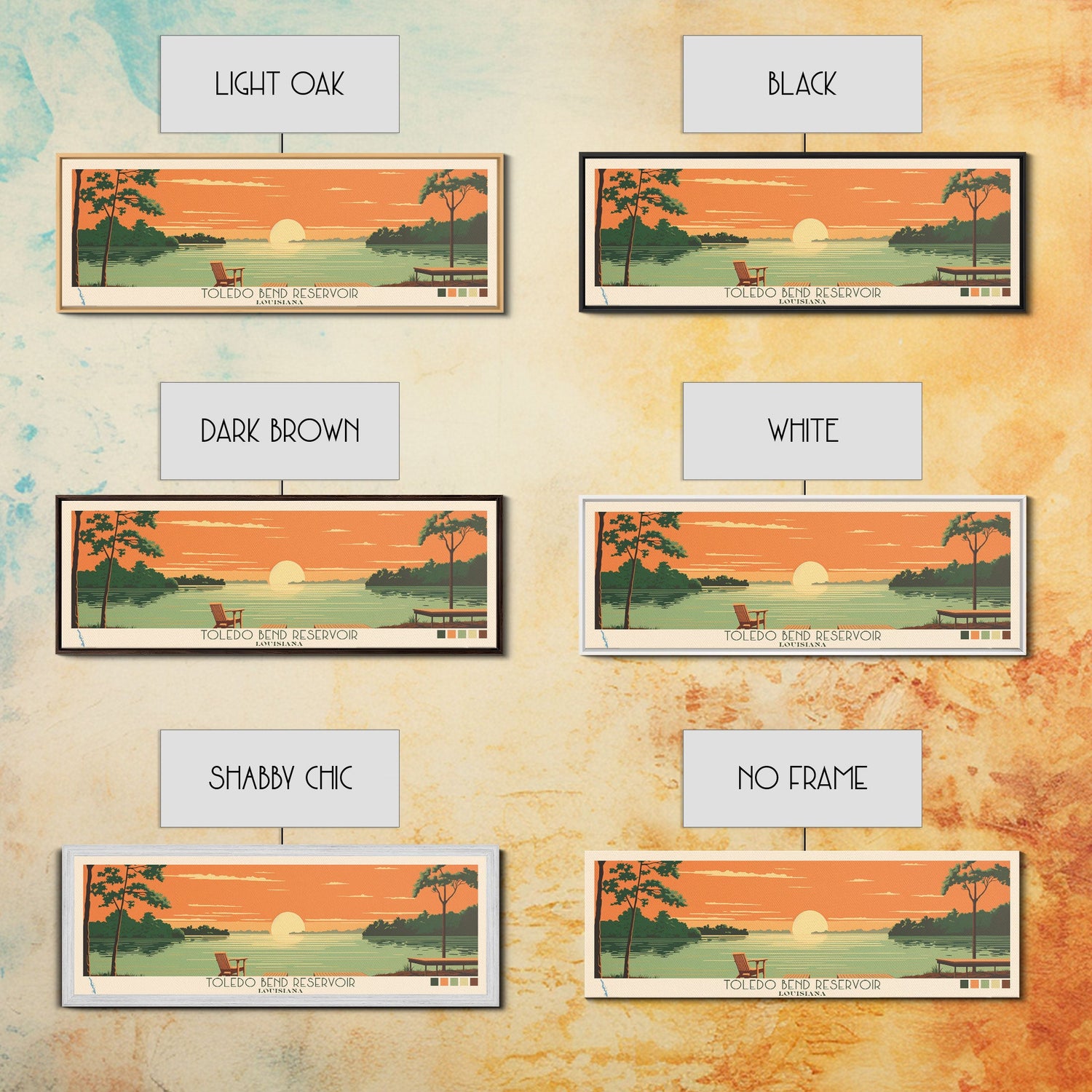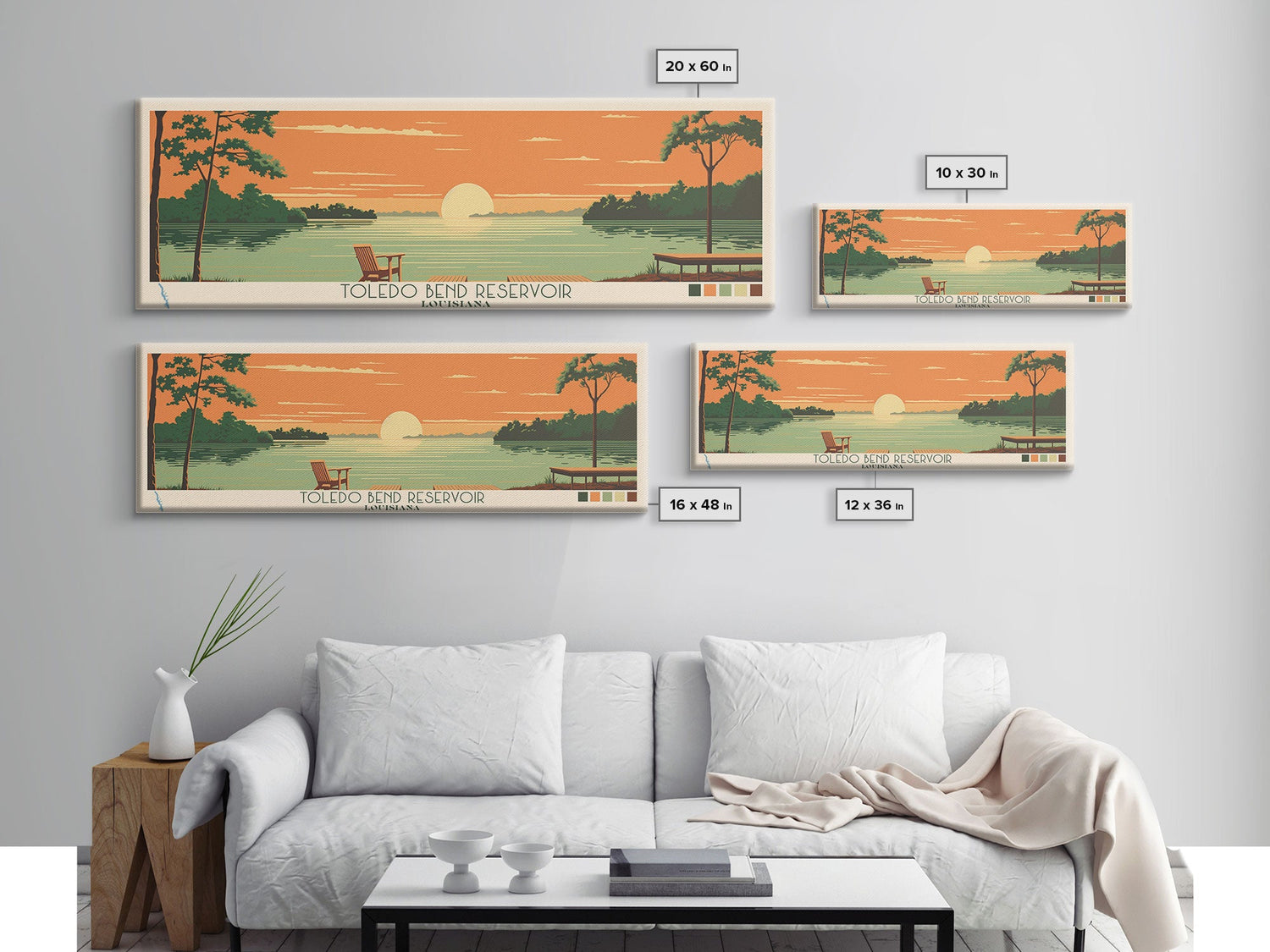 Toledo Bend Reservoir, Louisiana Framed Canvas Print, Lake House Art, Midcentury Modern Decor, Pop Art, Travel Poster, Bedroom Wall Art - 10x30 Inches / No Frame - Stretched Canvas Only is backordered and will ship as soon as it is back in stock.
