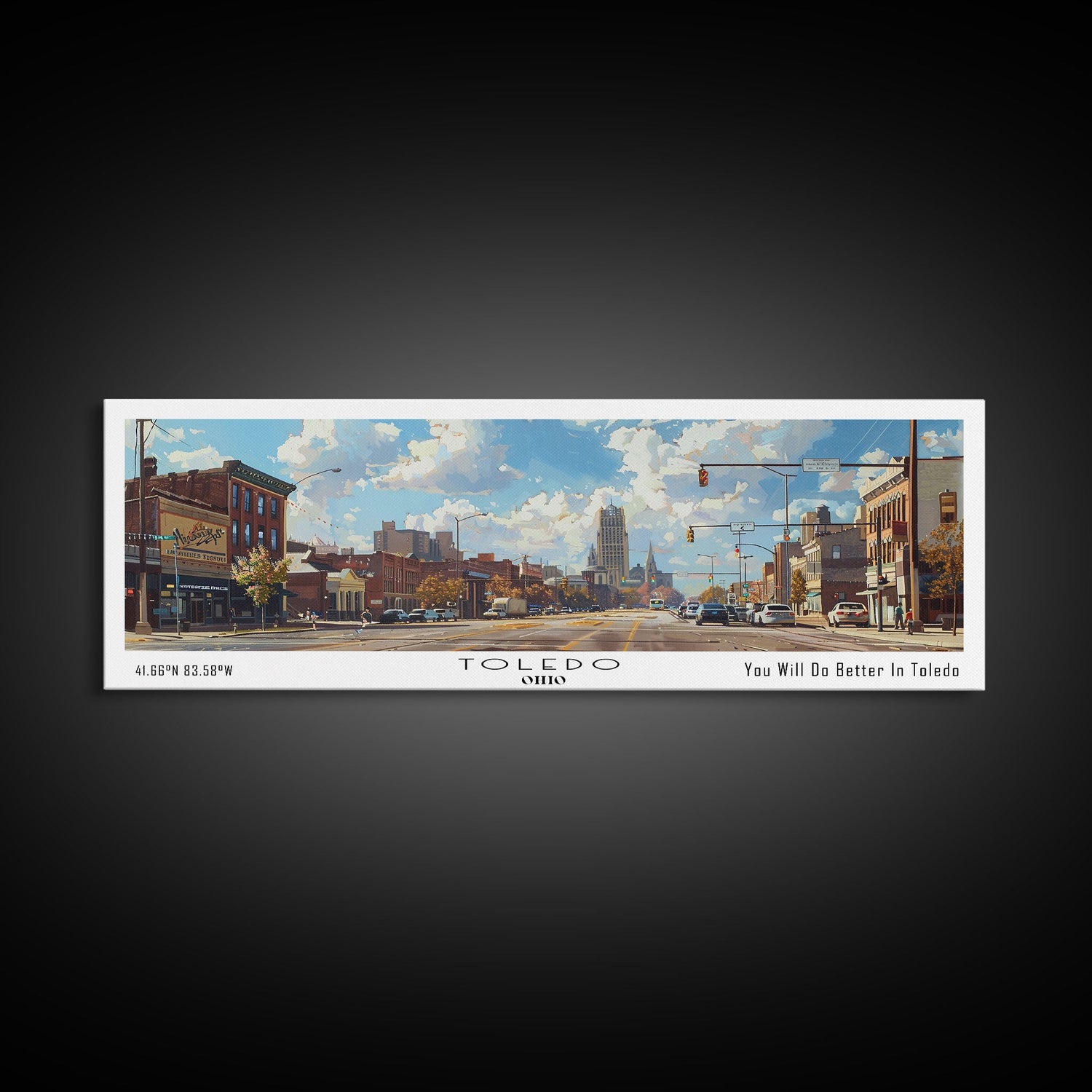 Toledo Ohio Panoramic Framed Canvas Print, Retro Style Wall Art, Living Room Decor, Unique Travel Poster, Artistic Office Gift, Original Artwork