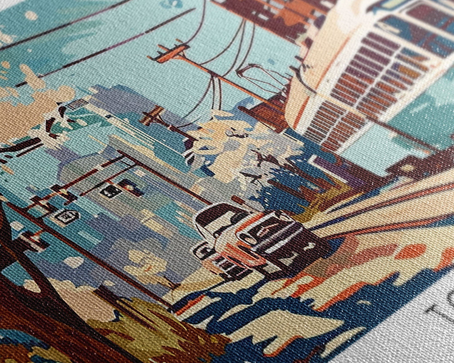 Toledo Ohio Panoramic Wall Art, Mid Century Modern Framed Canvas Print, Retro Pop Art Travel Poster, Living Room and Office Wall Art Decor - 10x30 Inches / No Frame - Stretched Canvas Only is backordered and will ship as soon as it is back in stock.