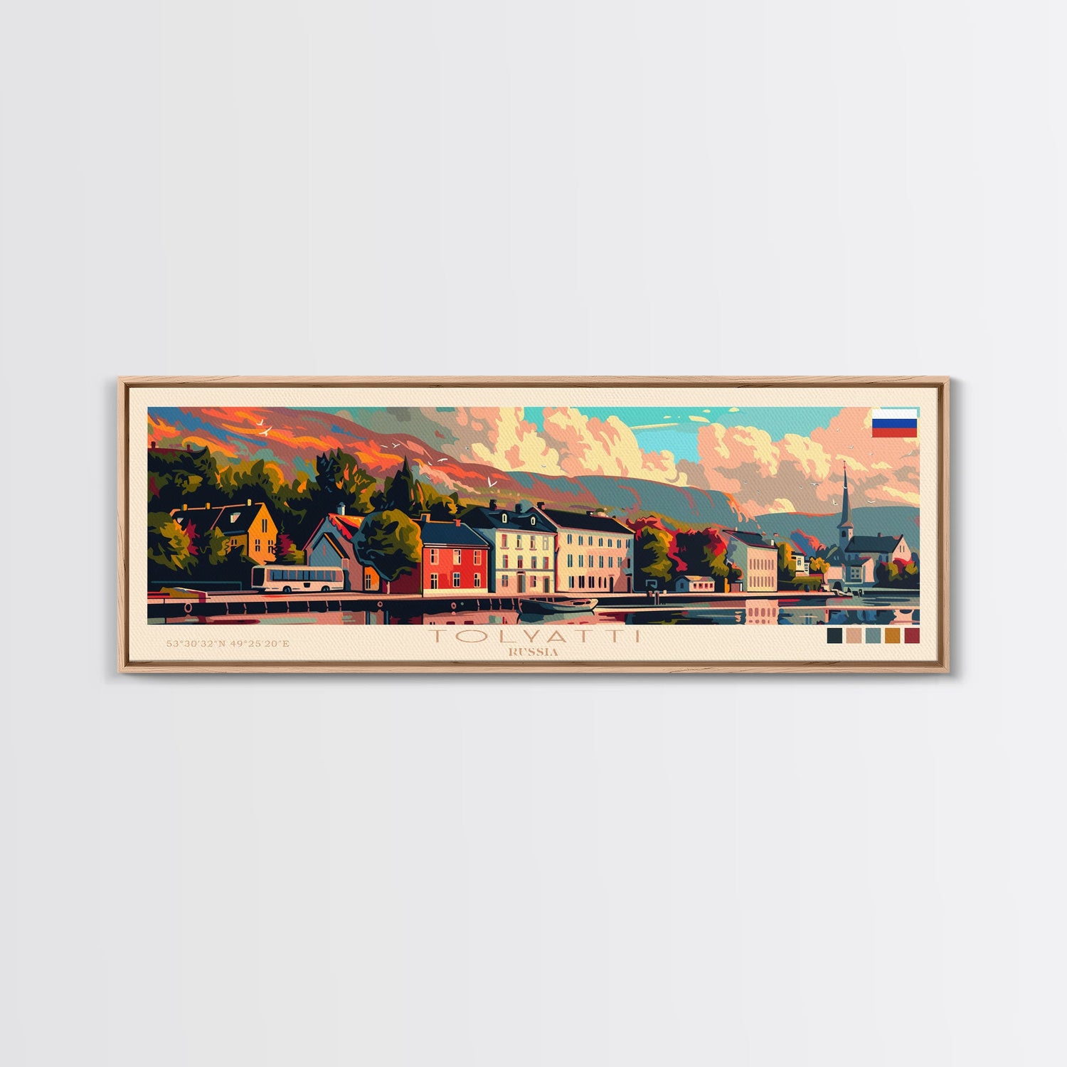 Tolyatti Russia Panoramic Travel Poster, Framed Canvas Print or Metal Wall Art, Travel Art, Home Decor, Panoramic Painting, Midcentury Art