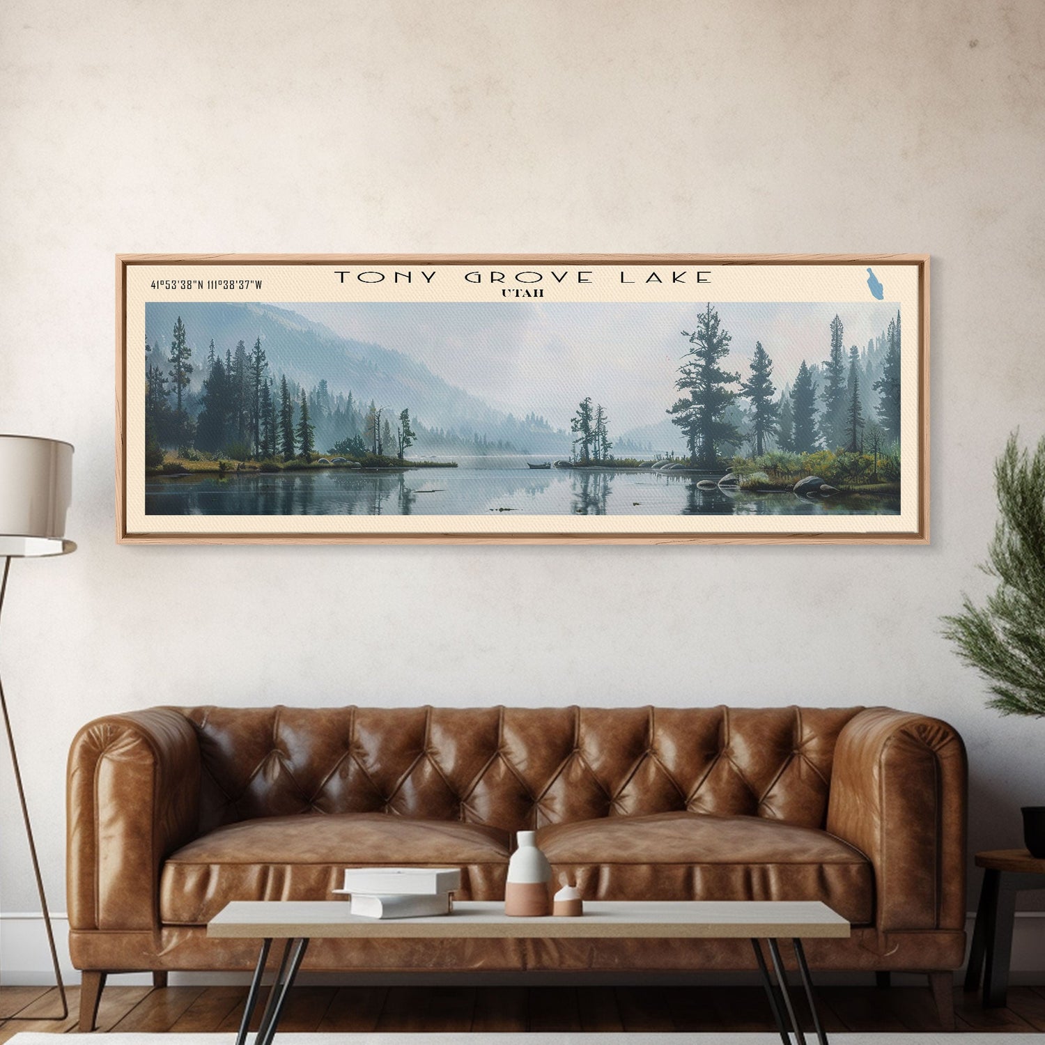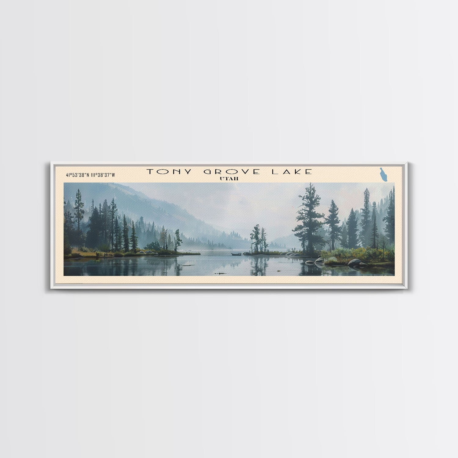 Tony Grove Lake Utah Panoramic Wall Art, Framed Canvas Print, Lake House Decor, Travel Poster, Scenic Lake Scene, Bedroom Decor