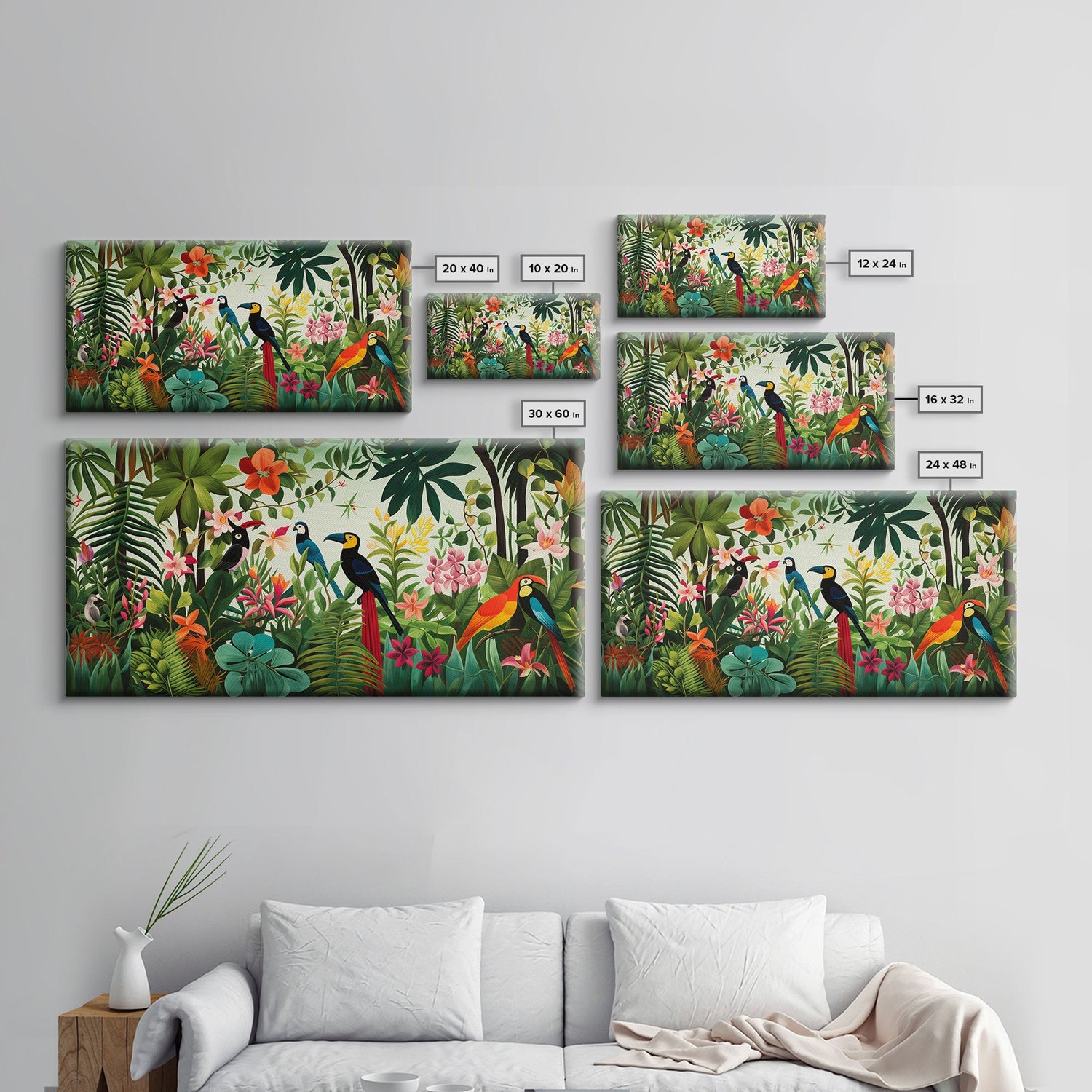 Toucan Wall Art, Tropical Art Print, Bird Art, Animal Art, Panoramic Art, Wall Art, Canvas Art, Landscape Art, Couple Gift, Dorm Room Art - 10x20 Inches / No Frame - Stretched Canvas Only is backordered and will ship as soon as it is back in stock.