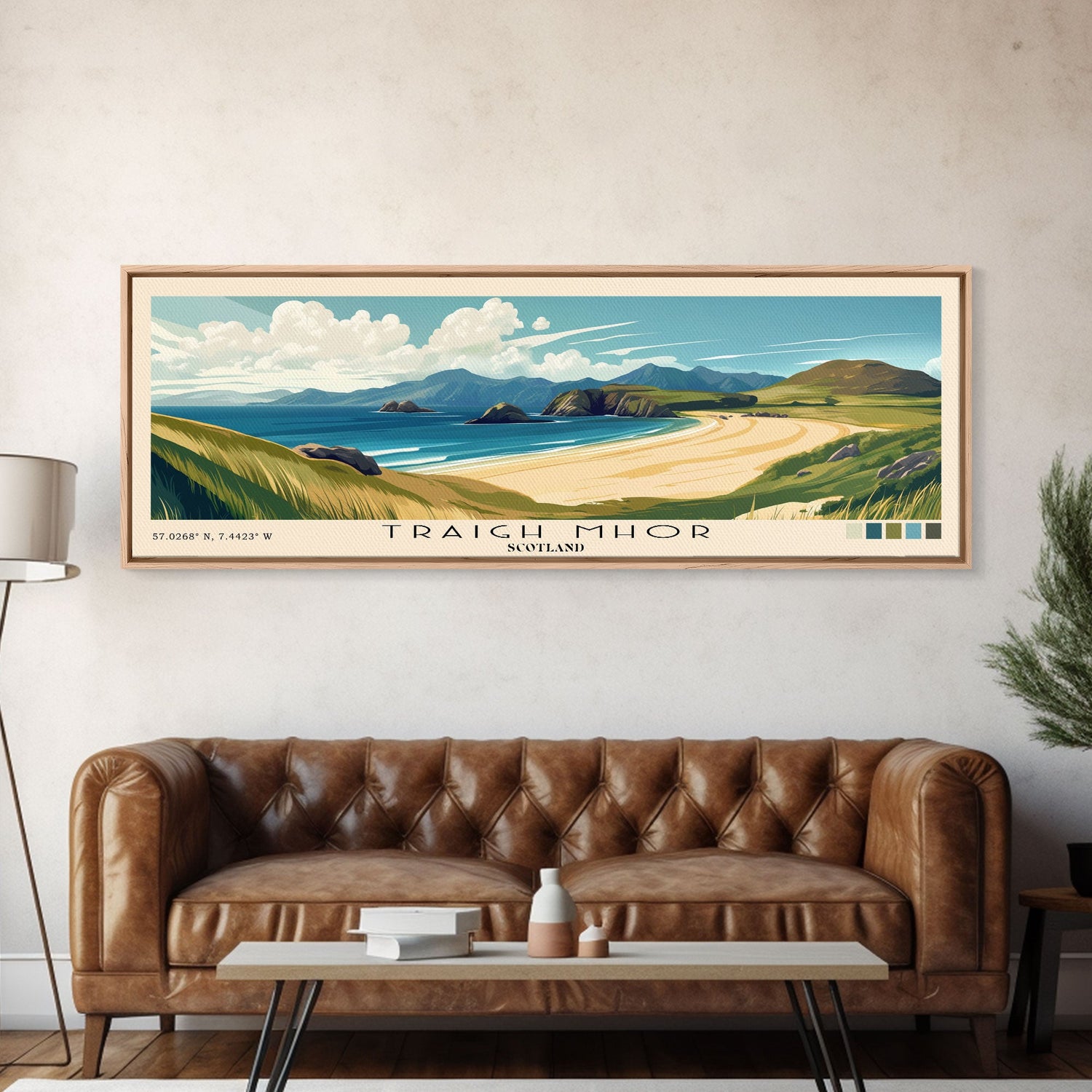 Traigh Mhor, Scotland Panoramic Beach Print, Vacation Gift, Scotland Wall Art, Framed Canvas Print, Framed Beach Painting