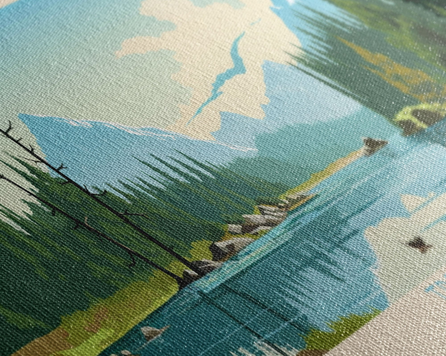 Trembleur Lake, British Columbia Framed Canvas Print, Lake House Art, Midcentury Modern Decor, Pop Art, Travel Poster, Bedroom Wall Art - 10x30 Inches / No Frame - Stretched Canvas Only is backordered and will ship as soon as it is back in stock.