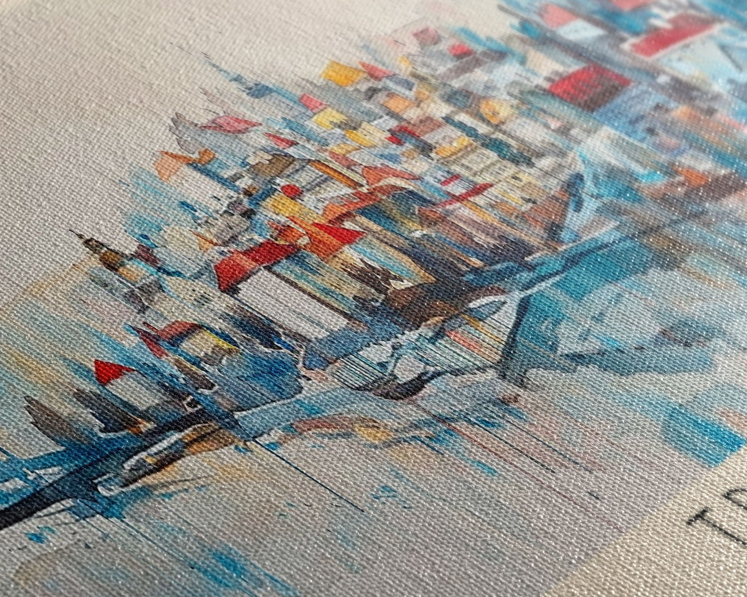 Most of our canvases are made in the USA, with the exception of canvases ordered with the light oak unstained frames, and any large canvases (24x48, 30x60, 16x48 and 20x60) ordered WITH a frame. These are temporarily made in and shipped from Europe, while we try to find a more consistent supplier in the USA.