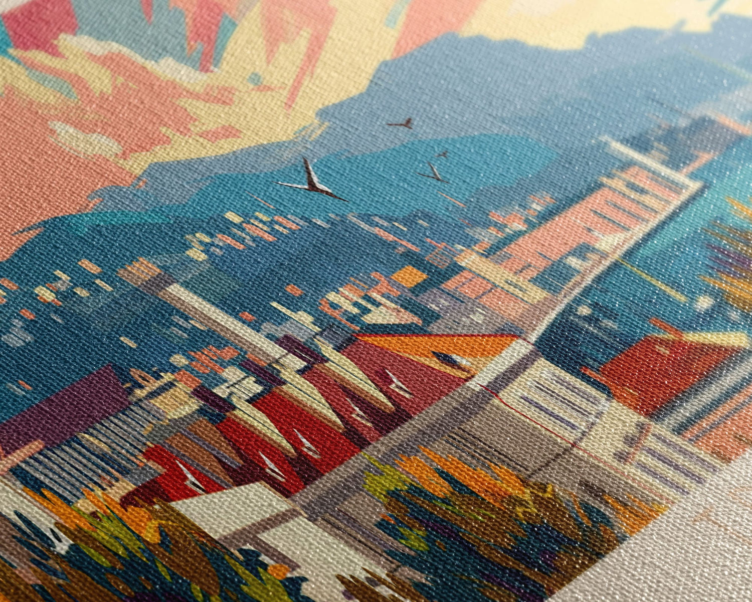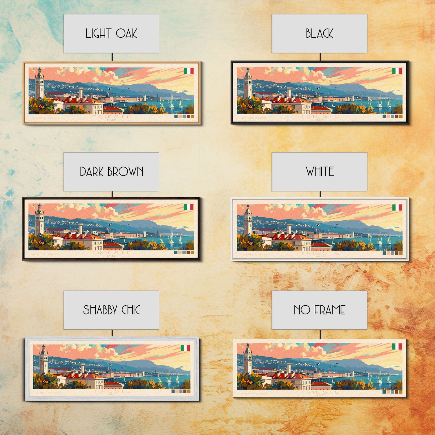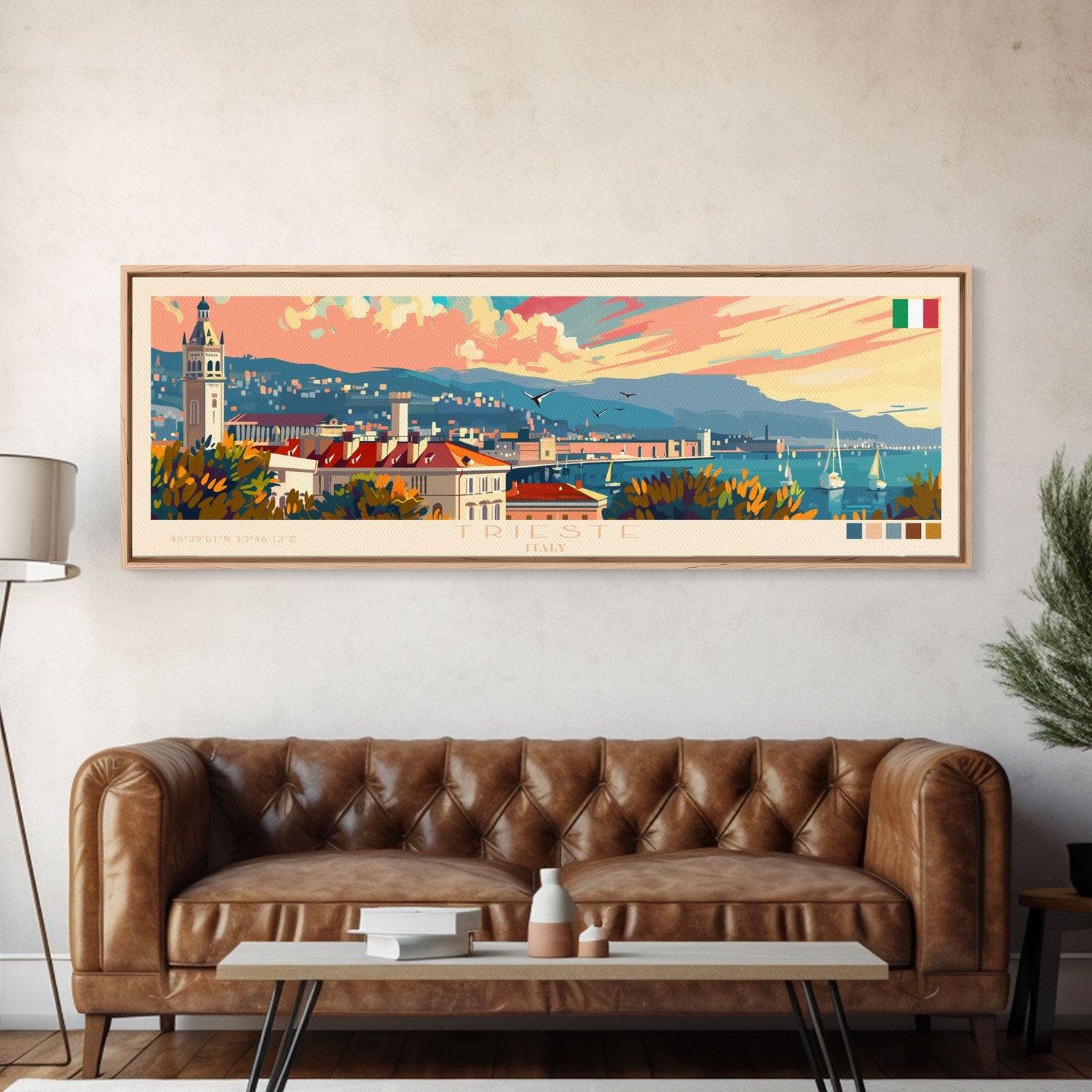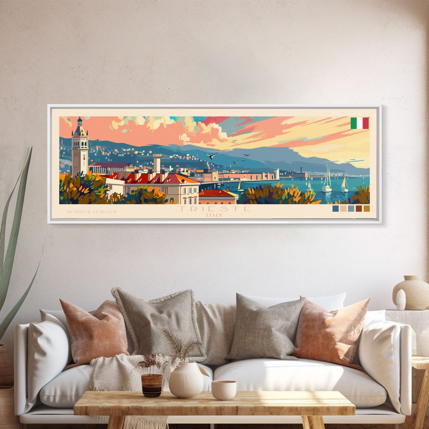 Trieste Italy Panoramic Travel Poster, Framed Canvas Print or Metal Wall Art, Travel Art, Home Decor, Panoramic Painting, Midcentury Art