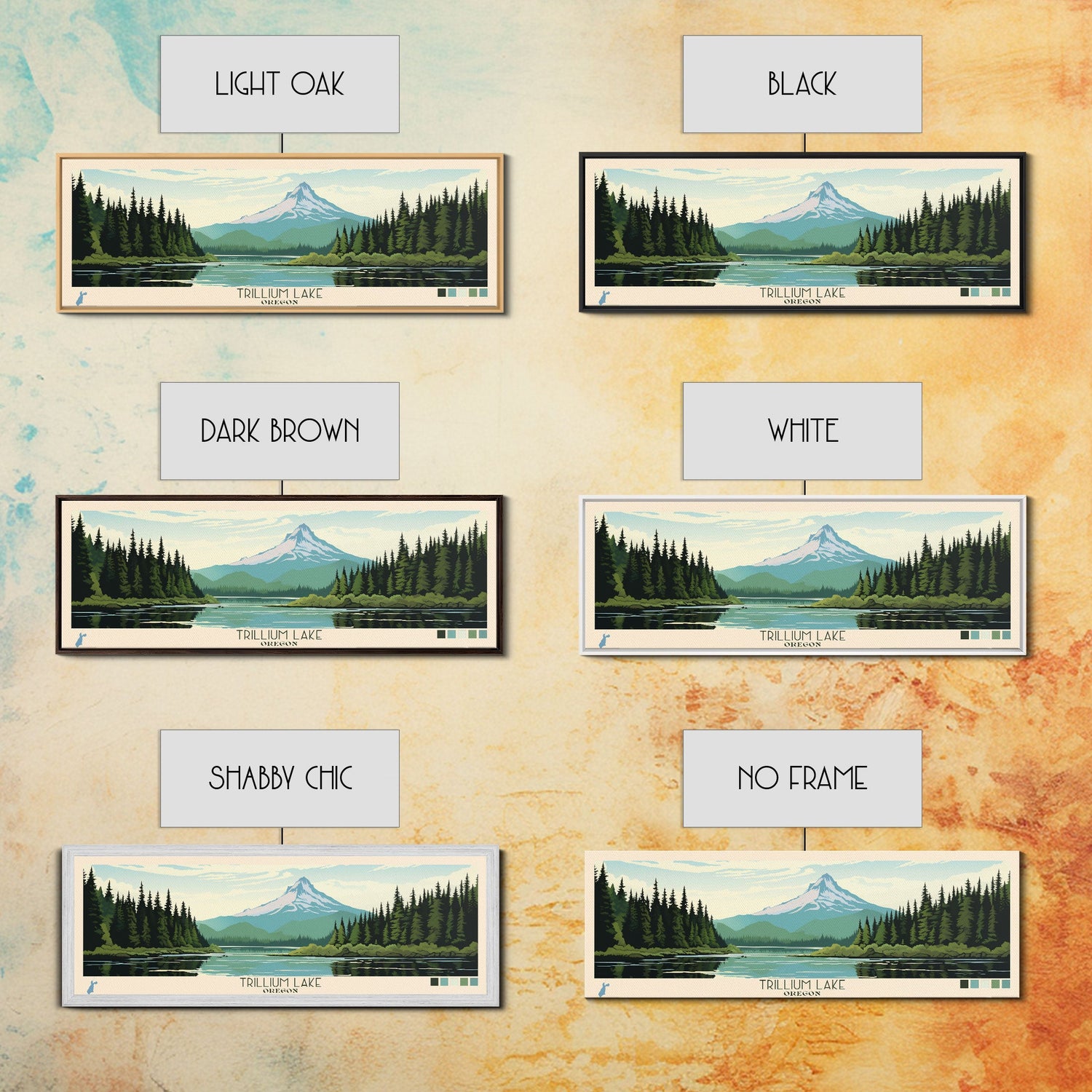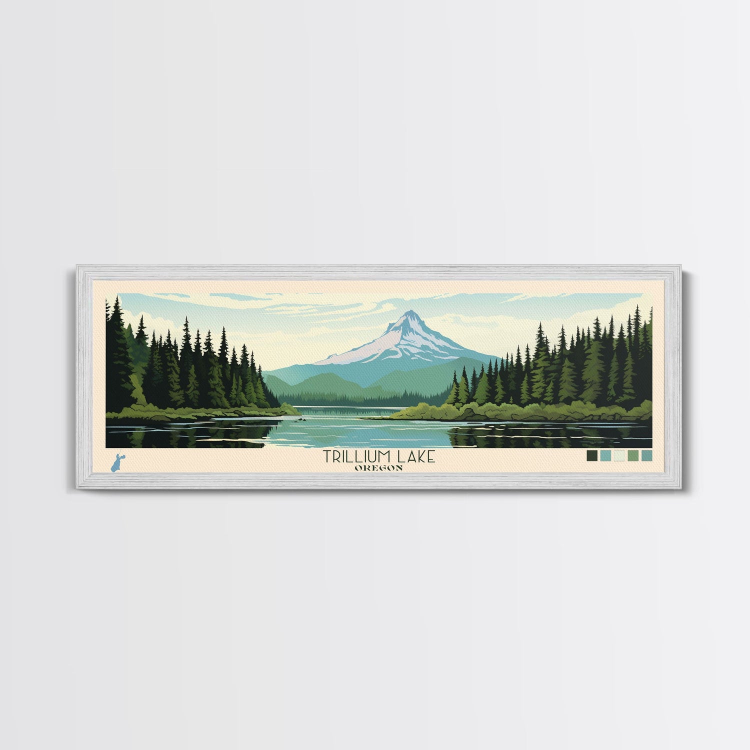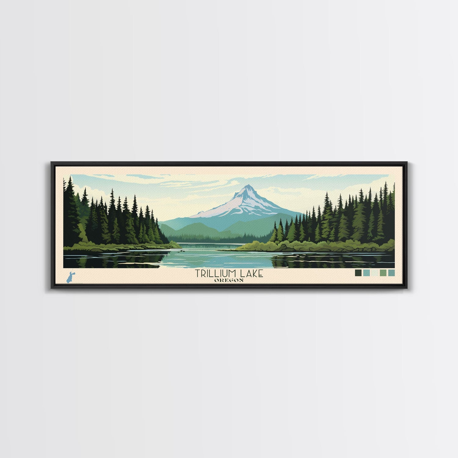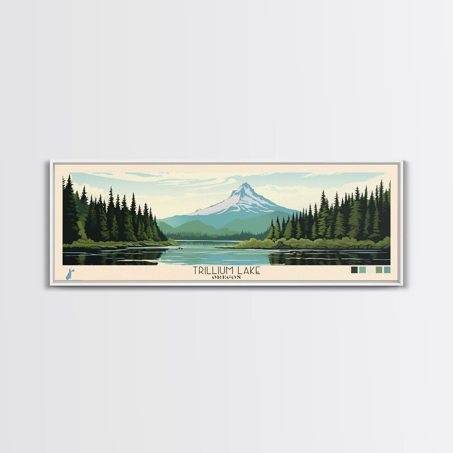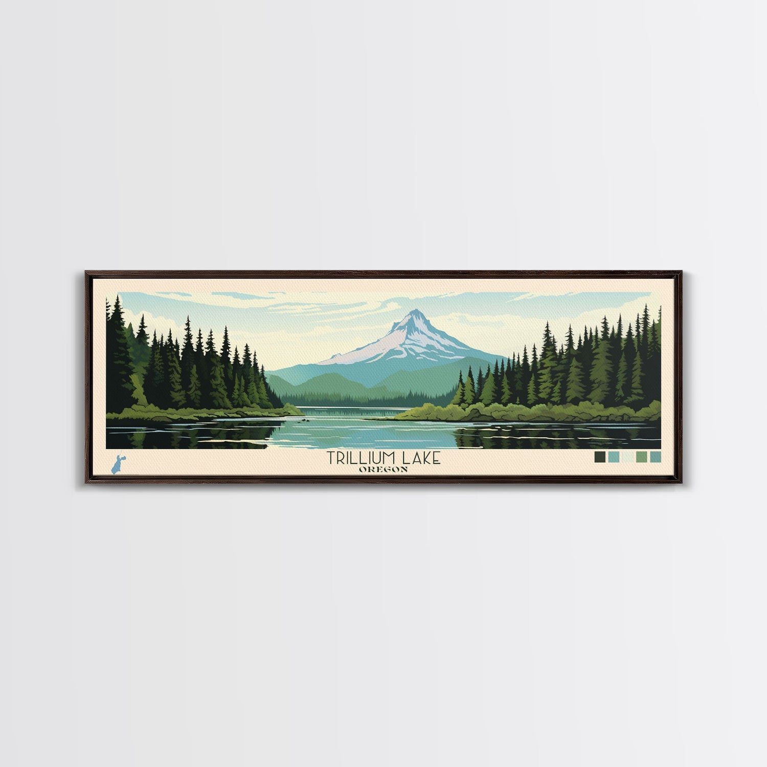 Trillium Lake, Oregon Framed Canvas Print, Lake House Art, Midcentury Modern Decor, Pop Art, Travel Poster, Bedroom Wall Art - 10x30 Inches / No Frame - Stretched Canvas Only is backordered and will ship as soon as it is back in stock.