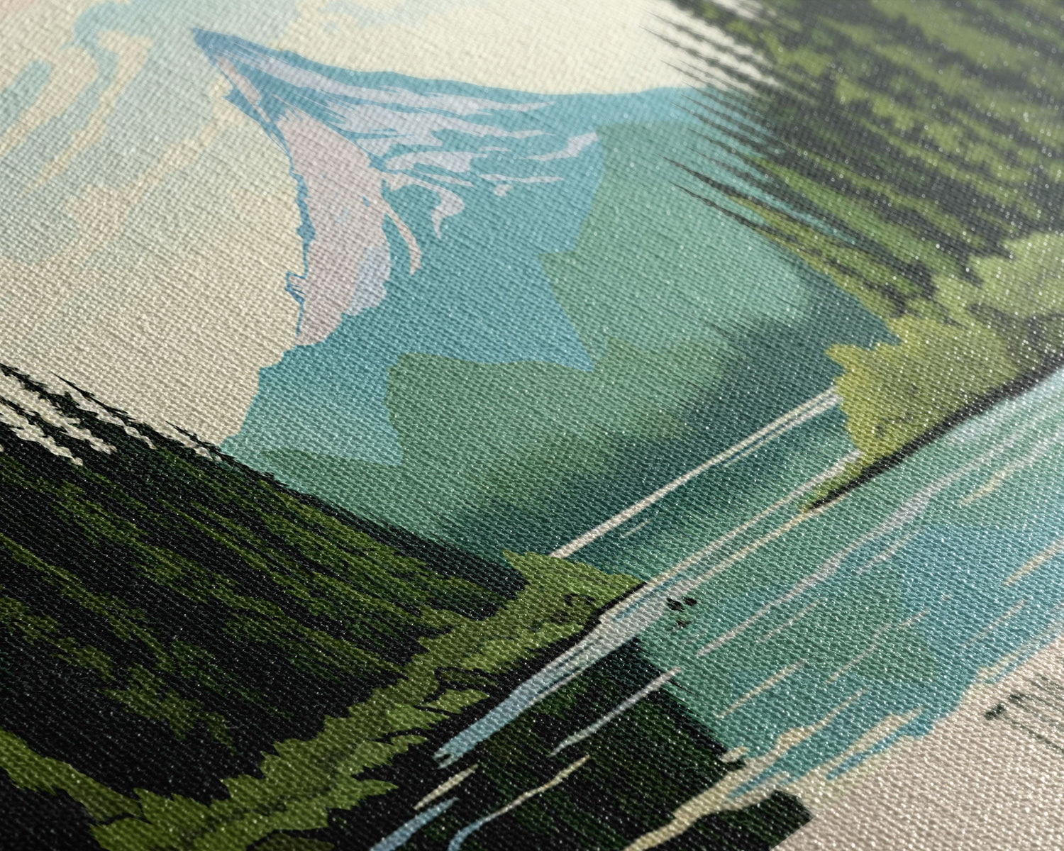 Trillium Lake, Oregon Framed Canvas Print, Lake House Art, Midcentury Modern Decor, Pop Art, Travel Poster, Bedroom Wall Art