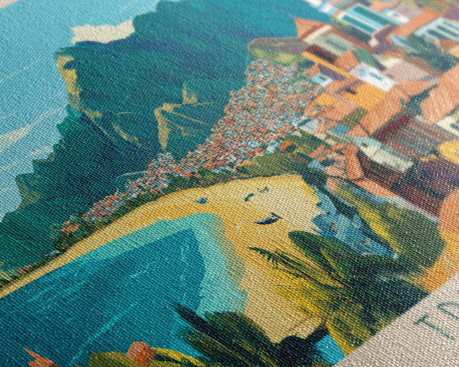 Most of our canvases are made in the USA, with the exception of canvases ordered with the light oak unstained frames, and any large canvases (24x48, 30x60, 16x48 and 20x60) ordered WITH a frame. These are temporarily made in and shipped from Europe, while we try to find a more consistent supplier in the USA.