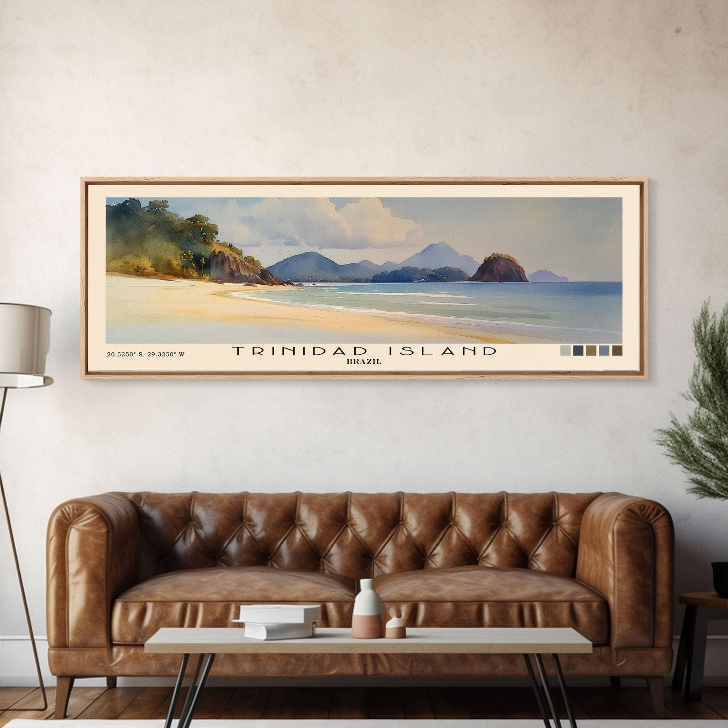 Trinidad Island, Brazil Watercolor Print, Vacation Gift, Brazil Wall Art, Beach Painting, Beach Decor, Large Wall Art, Wood Frame Art - 10x30 Inches / No Frame - Stretched Canvas Only is backordered and will ship as soon as it is back in stock.
