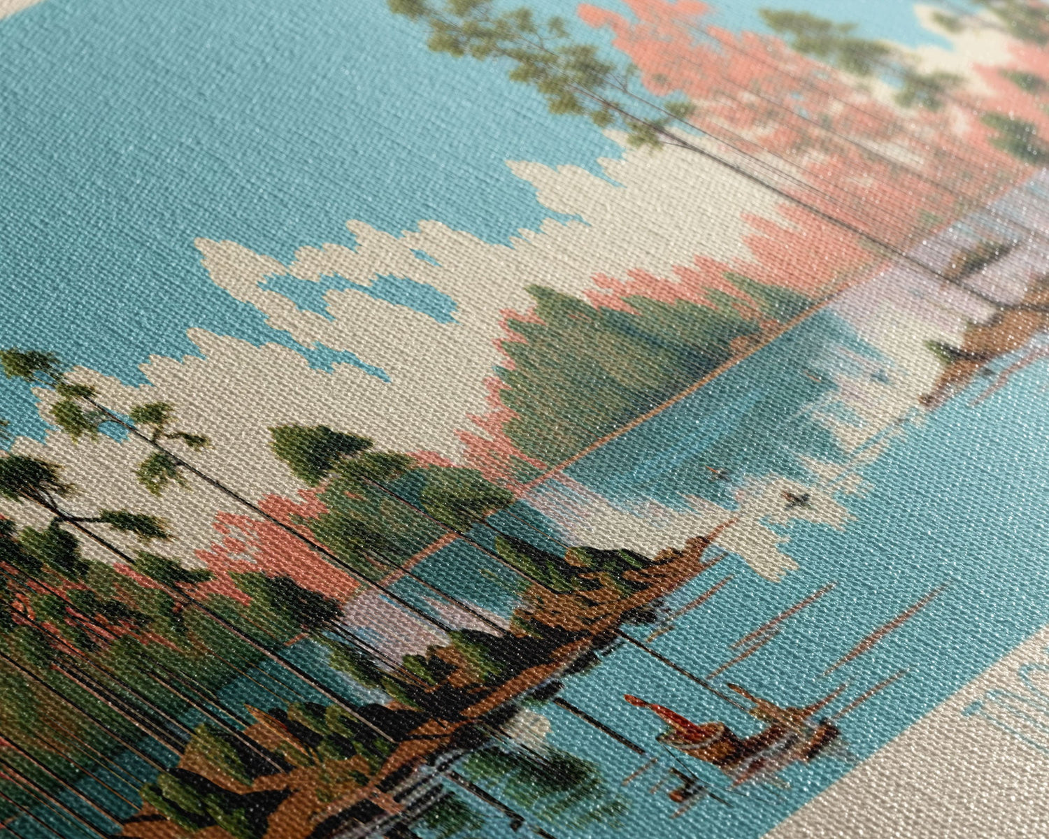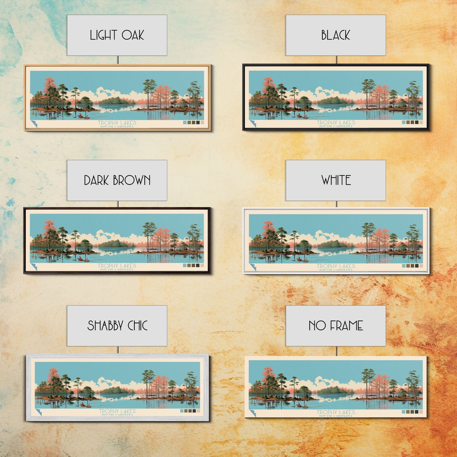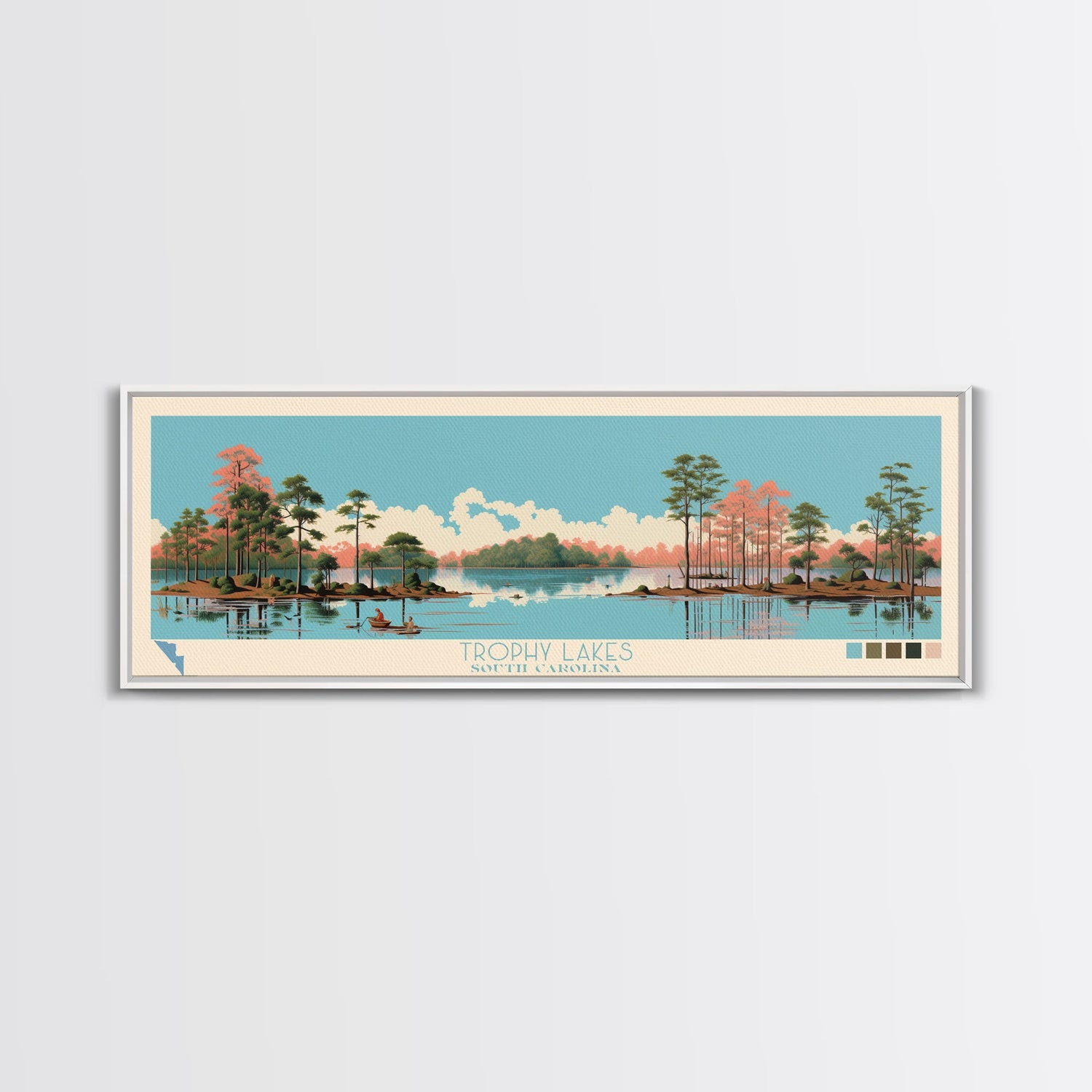 Trophy Lakes, South Carolina Framed Canvas Print, Lake House Decor, Midcentury Modern Art, Pop Art, Travel Poster, Living Room Wall Art - 10x30 Inches / No Frame - Stretched Canvas Only is backordered and will ship as soon as it is back in stock.
