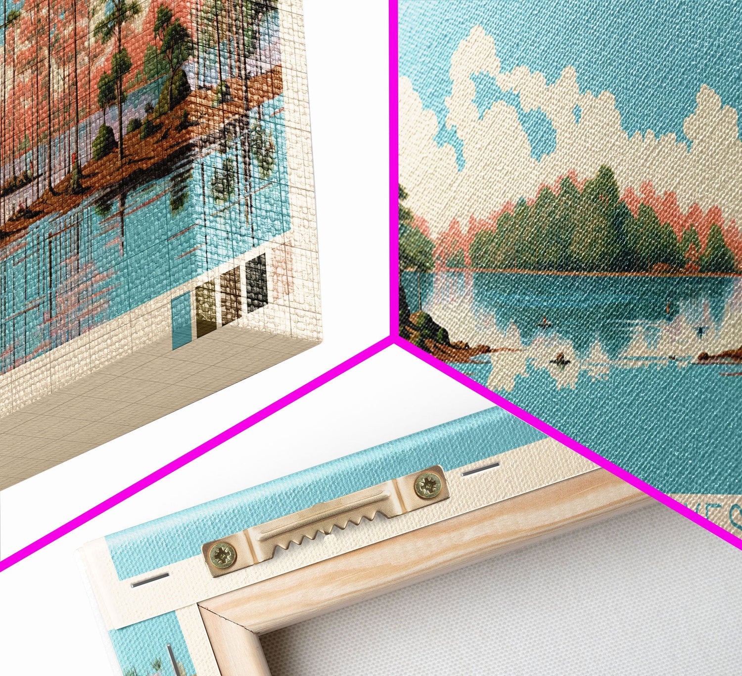 Trophy Lakes, South Carolina Framed Canvas Print, Lake House Decor, Midcentury Modern Art, Pop Art, Travel Poster, Living Room Wall Art