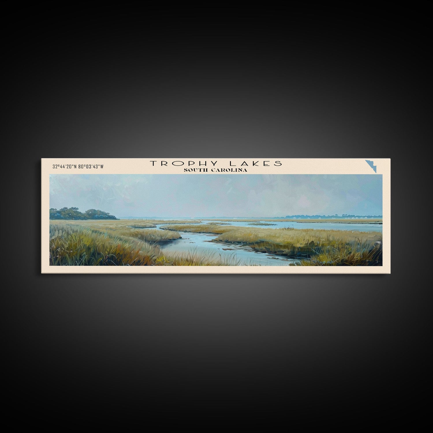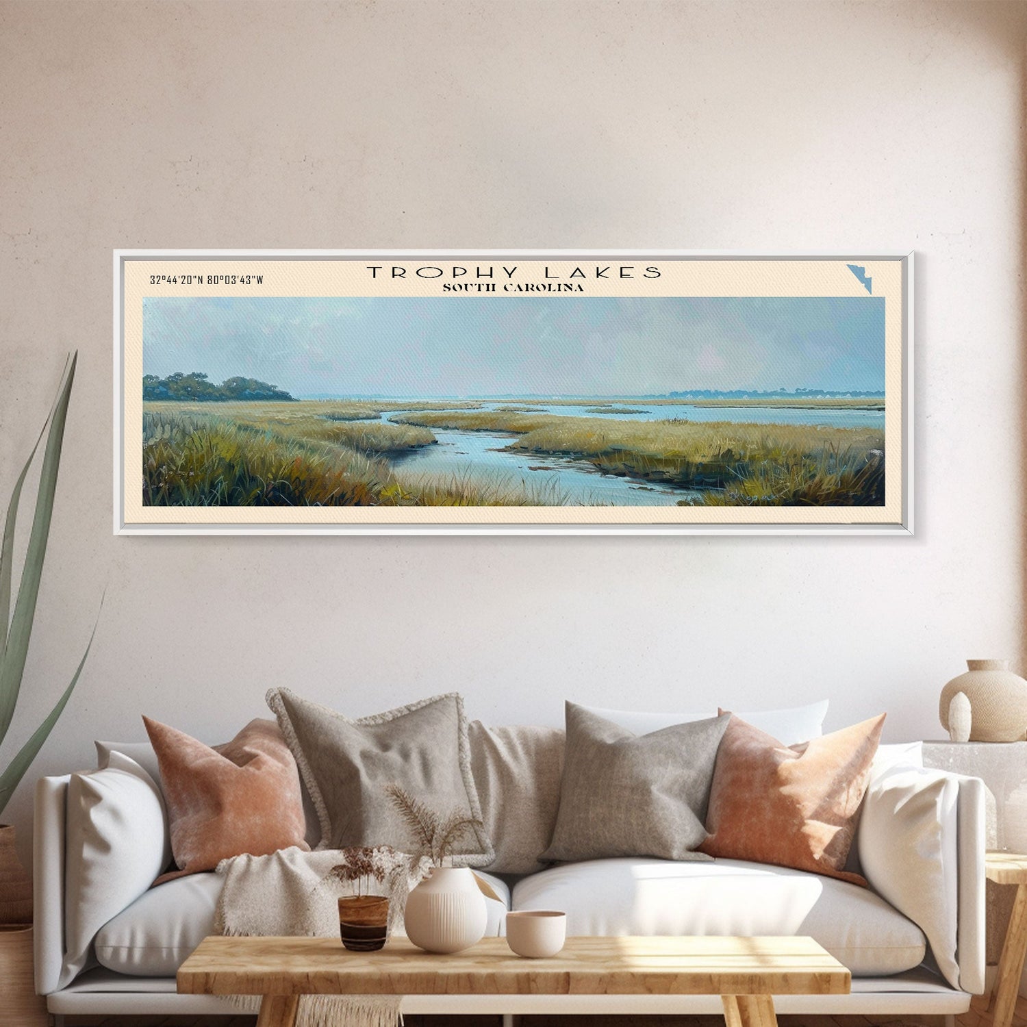 Trophy Lakes South Carolina Panoramic Wall Art, Framed Canvas Print, Lake House Decor, Travel Poster, Scenic Lake Scene, Living Room Art