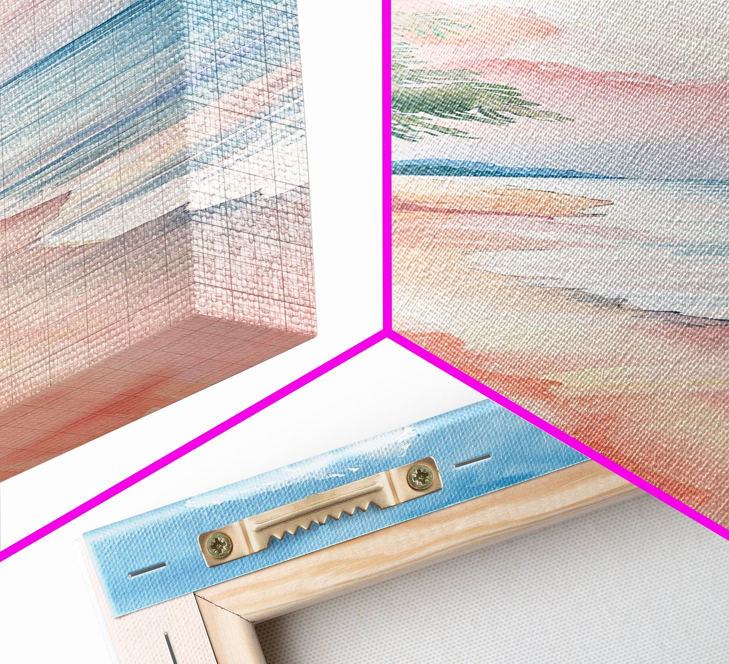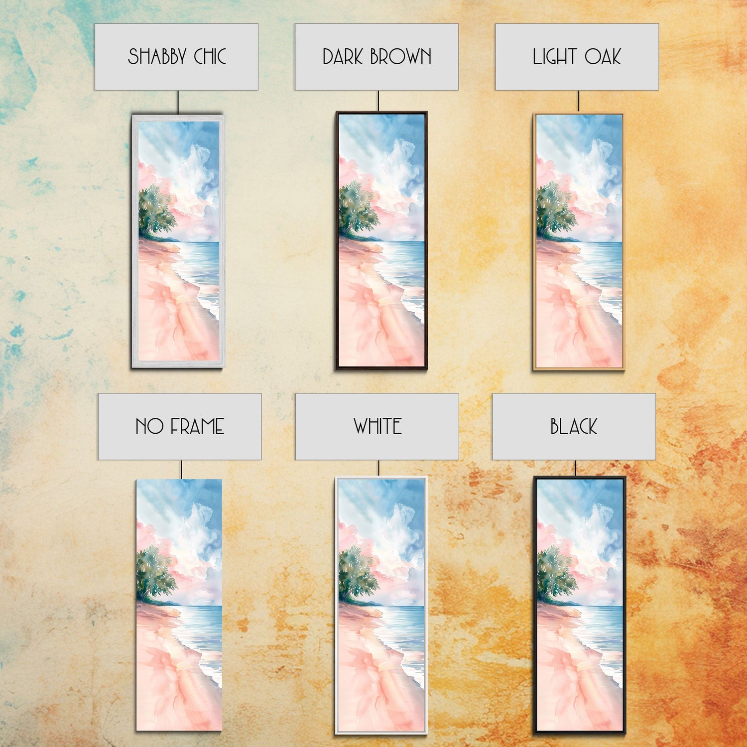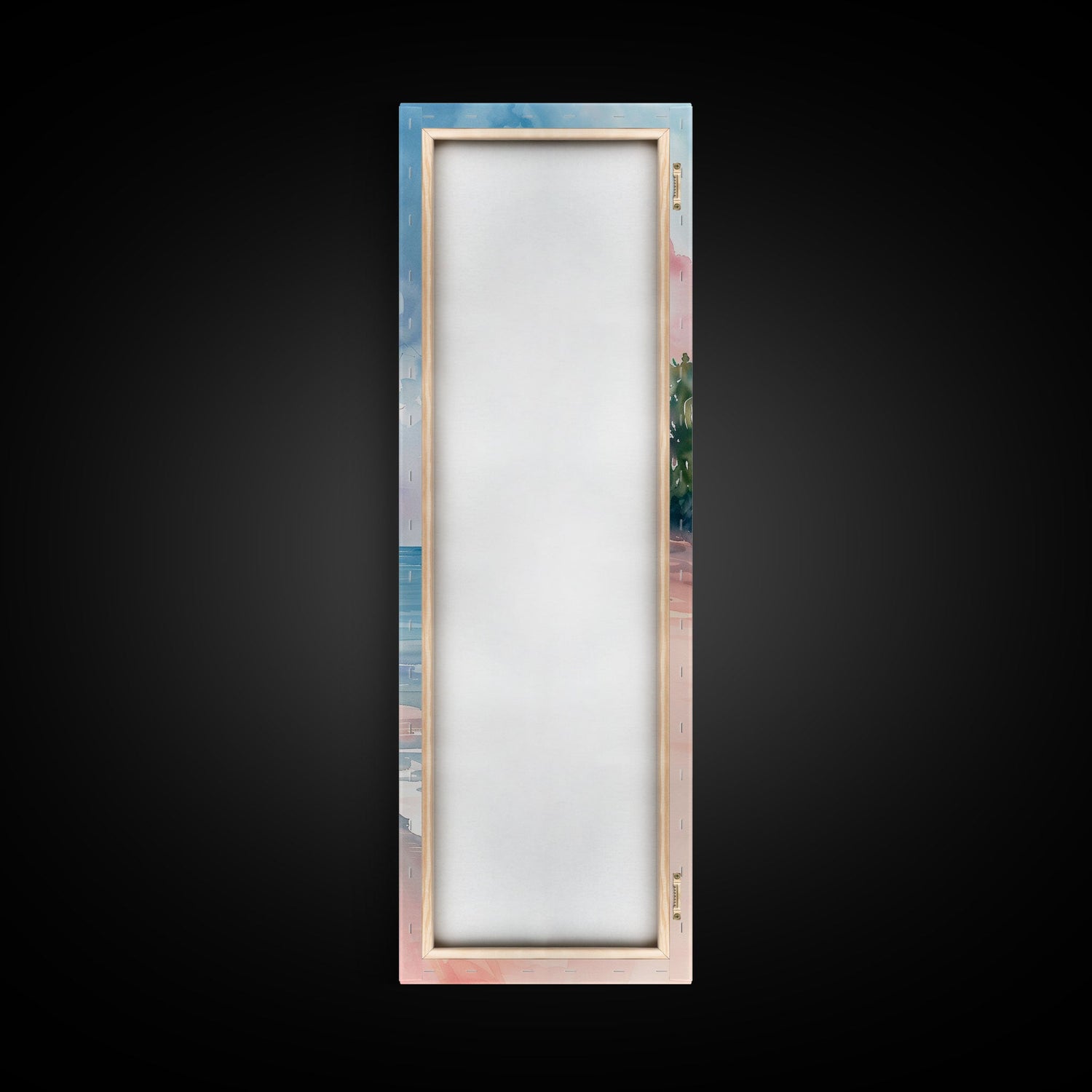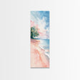 Tropical Beach Watercolor Art - Framed Canvas Print, Skinny Tall Art, Coastal Landscape Wall Art, Living Room Decor, Bedroom Art, Tropical Print
