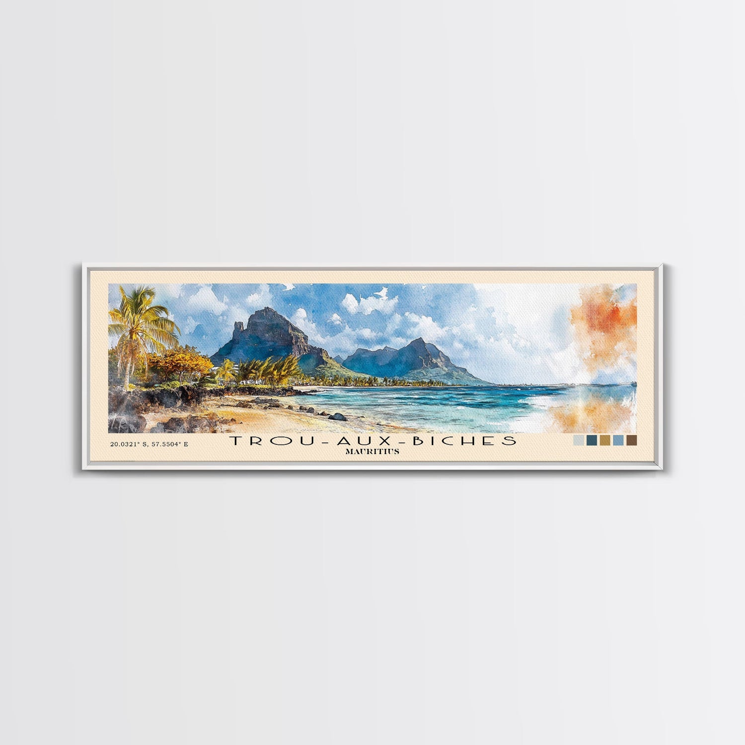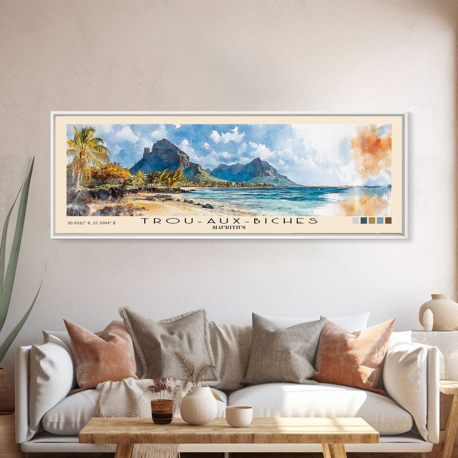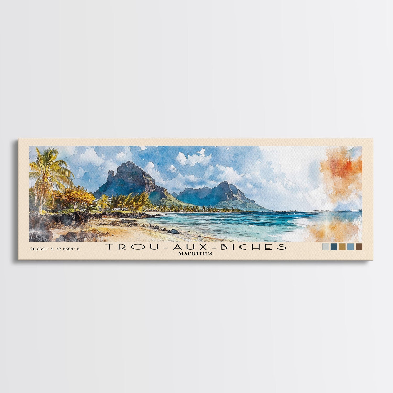 Trou-aux-Biches, Mauritius Watercolor Beach Print, Vacation Gift, Mauritius Wall Art, Beach Painting, Beach Decor, Beach Painting - 10x30 Inches / No Frame - Stretched Canvas Only is backordered and will ship as soon as it is back in stock.