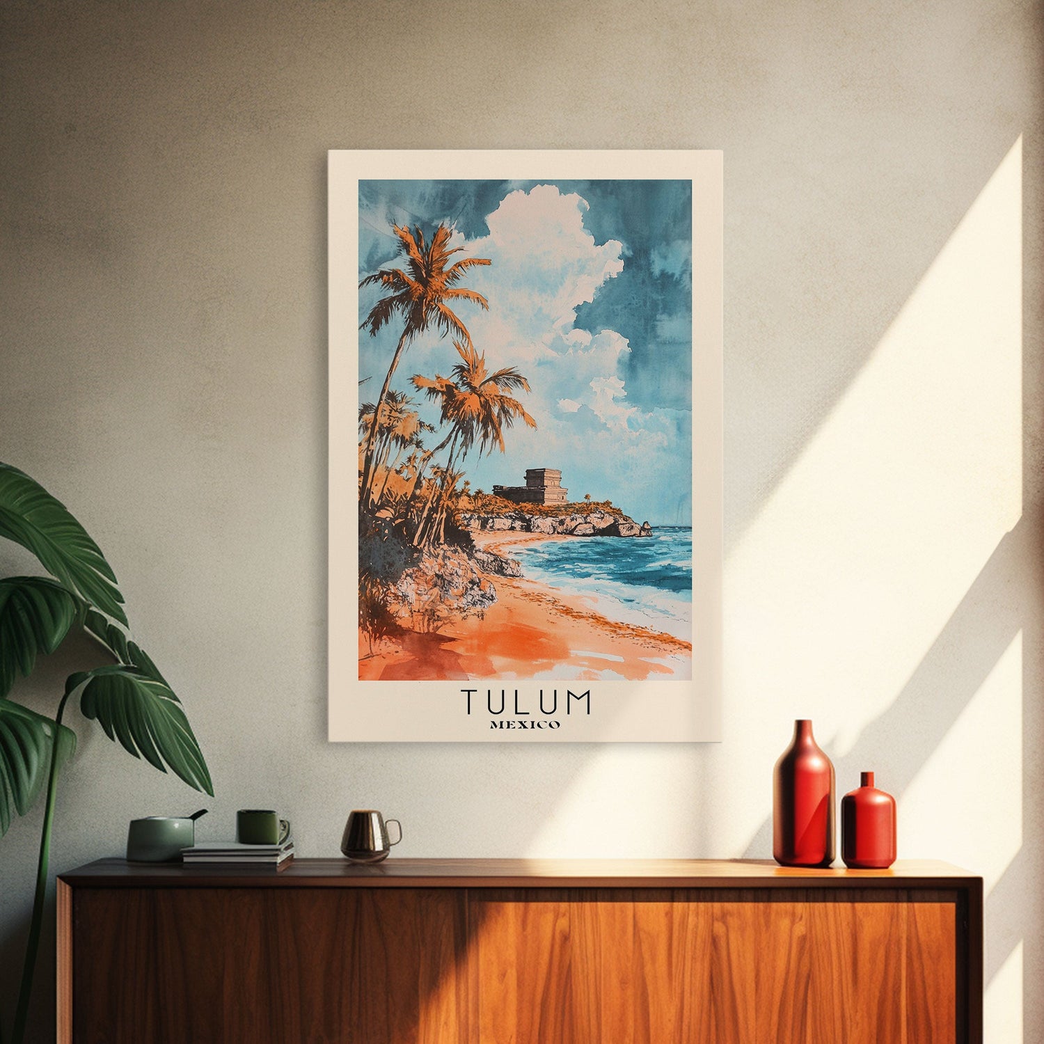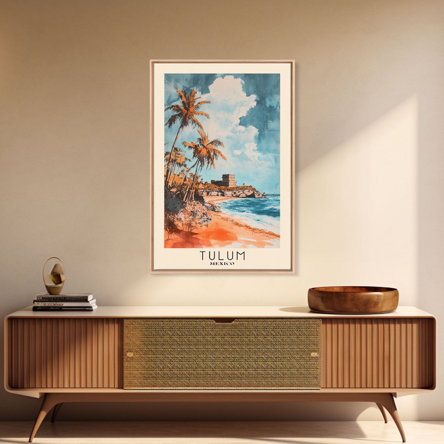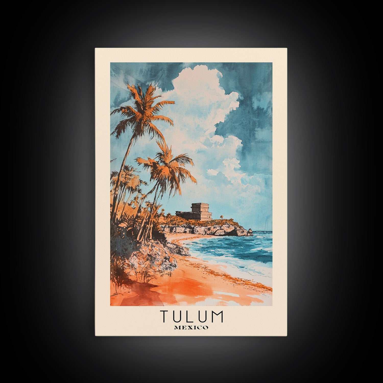 Tulum, Mexico Watercolor Print, Vacation Gift, Mexico Wall Art, Beach Painting, Beach Decor, Large Wall Art, Wood Frame Art