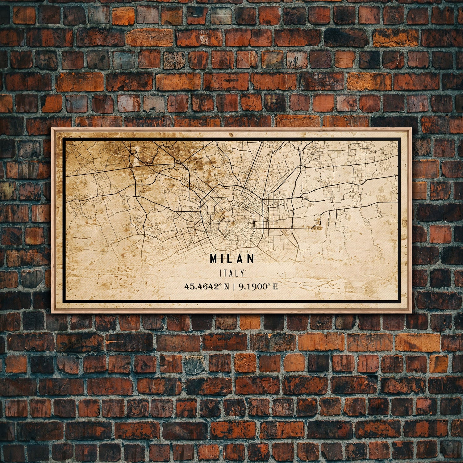 Vintage Milan Italy map print poster or framed canvas, Milan map print poster canvas, Milan city map print poster canvas, Travel Art - 10x20 Inches / Gallery Wrap Canvas - Ready To Hang is backordered and will ship as soon as it is back in stock.