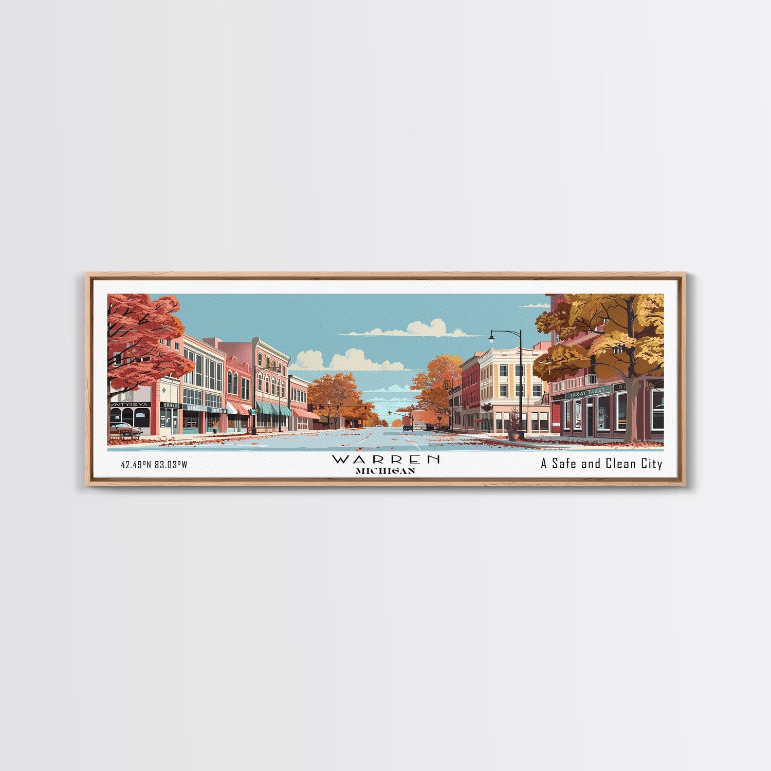 Warren Michigan Panoramic Painting, Mid Century Modern Framed Canvas Print, Retro Pop Art Travel Poster, Office Wall Art, Home Decoration